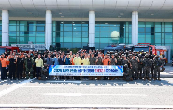 울진군은 지난 8월 22일 2025년 UFS 연습의 일환으로 기성면 울진비행장에서 대규모 대테러 종합훈련을 실시했다. 이번 훈련은 북한의 테러 위협과 APEC 국제행사 개최에 따른 안보 대비 태세를 확립하고자 비행장 핵심시설에 대한 다양한 공격 상황을 가정하여 전개됐으며 울진군 통합방위협의회 위원 및 해룡여단 울진영양대대, 사단 화생방대대CSRT, 울진군청, 부산지방항공청, 한국공항공사, 경북경찰청, 울진경찰서, 경북소방본부, 울진소방서, KT울진지점 등 100여명의 훈련 인력이 실전과 같은 훈련을 진행했다. 훈련 주요 내용으로는 ▲거수자의 침투 시도와 레이더 폭발 ▲지상송신장치 테러 ▲항공기 피탈 시도 ▲화학물질 탐지 및 긴급복구 등으로 실제 상황에 준하는 대응 훈련이 이어졌다. 울진비행장은 대구공항 등 민항공사를 제외하고 경북 지역 내 유일하게 항공기 이착륙이 가능한 활주로 핵심 시설을 갖춘 전략적 요충지로 해당 시설이 마비될 경우 국가 안보에 심각한 영향을 줄 수 있다는 점에서 이번 훈련의 중요성이 강조됐다. 손병복 울진군수는“울진비행장은 국가 안보와 직결된 핵심 시설”이라며 “이번 훈련을 통해 민·관·군·경·소방이 협력해 어떠한 위협에도 신속히 대응할 수 있도록 대비태세를 강화해 나가겠다”라고 말했다.