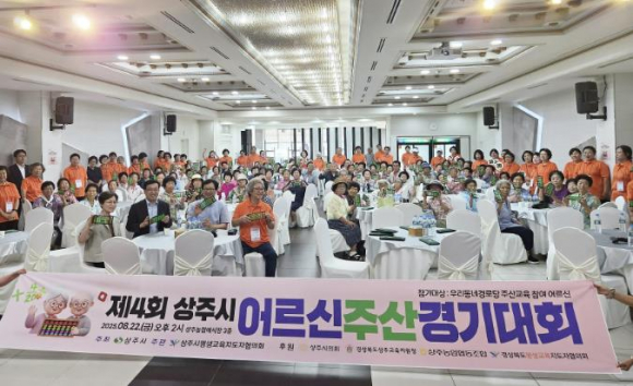 지난 8월 22일, 상주농협예식장에서 ‘제4회 상주시 어르신 주산경기대회’가 열렸다.이번 대회는 상주시평생교육지도자협의회가 주관하여 대회에 참가한 어르신과 심판, 평생교육지도자, 봉사자 등 160여 명이 참석한 가운데 개회식, 주산경기대회, 시상식 순으로 진행됐다.어르신 치매 예방과 인지능력 향상을 위해 상주시 7개 마을에서‘우리동네 주산교실’과 ‘장애인 주산학습 프로그램’이 운영되고 있으며, 참여 학습자 중 90여명의 어르신이 본 대회에 참가하여 주산 실력을 겨루었다.대회는 단체 및 개인전으로 치러졌고, 단체 부문에서 대상 이안면, 최우수상 화동면, 우수상 화서면이 영광을 차지했으며, 개인 부문에서 대상 김관식, 최우수상 이경남, 우희봉, 우수상 임홍기, 채순자, 주학 어르신이 영예를 안았다. 최고령자 장임순 어르신에게는 장수상이 수여됐다.입상자들은 오는 9월 23일 구미시에서 열리는 ‘제5회 경상북도 어르신 주산경기대회’에 상주시 대표로 참가하게 된다.오상철 상주시 부시장은 “이번 대회가 어르신들의 삶에 활력을 더하고 더 큰 도전을 향한 발판이 되기를 바란다”며, “상주시는 앞으로도 시민 모두가 함께 잘사는 평생학습도시를 만들기 위해 노력하겠다”고 말했다.