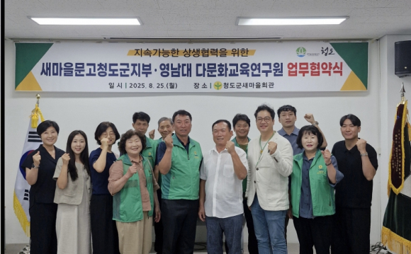 새마을문고 청도군지부(회장 박준익)는 지난 25일 영남대학교 다문화 교육연구원(원장 김보영)과 지속 가능한 상생 협력을 위한 업무협약(MOU)을 체결했다. 이번 협약은 지역 사회의 다문화 인식 개선과 교육 협력 강화를 위해 외국인 유학생과 지역 주민 간의 소통 및 교류를 확대하여 지역 사회 내 다양성과 포용성을 제고하고자 추진됐다. 주요 협약 사항으로 다문화 인식 개선 프로그램 공동 추진, 외국인 유학생의 지역 체험 및 교류 지원, 지역 정착 지원 등을 수행할 예정이며 협약 이후 양 기관은 공동 프로그램 기획 및 운영, 교육 자원 및 인적 교류 등을 통해 지속적인 협력관계를 유지할 방침이다. 김보영 영남대학교 다문화 교육연구원 원장은 “이번 협력을 통해 다문화의 다양한 인식 교육 프로그램과 교류·체험 등으로 보다 실질적이고 지속 가능한 상생 협력 기관이 되기를 희망한다”고 말했으며, 박준익 새마을문고 청도군지부장은 “새마을운동은 모두 함께 잘 살아보자는 데 있다. 인식 개선을 통해 다양성을 존중하고 함께 어우러질 수 있는 토대를 만들기 위해 노력하겠다”고 밝혔다.