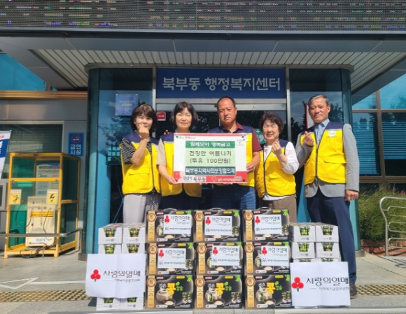 북부동지역사회보장협의체(공동위원장 임재윤, 김현주)는 26일 건강한 여름나기 지원사업의 일환으로 건강음료 두유 50박스(100만 원 상당)를 취약계층 가정에 전달했다.이번 사업은 북부동지역사회보장협의체가 추진하고 있는`2025년 함께모아 행복금고 연합모금사업`하반기 사업 중 하나이며 위원들이 직접 취약계층 가정에 방문하여 음료 전달과 함께 안부 인사 및 건강 확인을 했다.임재윤 공동위원장은 “더위가 그친다는 처서가 지났음에도 이어지는 폭염에 취약계층의 안전을 확인하고자 협의체 위원들이 뜻을 모았다. 작은 정성이지만 남은 여름을 건강하게 보내시는 데 도움이 됐으면 좋겠다.”라고 말했다.공동위원장 김현주 북부동장은 “폭염이 이어지는 가운데 취약계층의 안전 확인을 위해 발 벗고 나서 주시는 협의체 위원님들께 감사의 말씀을 드리며, 앞으로도 협의체 활동에 적극적으로 협조를 하여 복지 사각지대 발굴을 위해 함께 노력하겠다”라고 답했다.