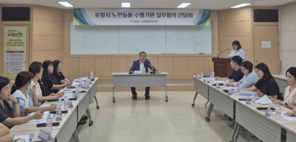 포항시는 26일 포항시 드림스타트 회의실에서 노인돌봄 수행기관 실무협의 간담회를 실시했다. 이번 간담회는 관계 공무원 및 노인맞춤돌봄서비스, 응급안전안심서비스 종사자 20여 명이 참석한 가운데 ▲독거어르신 폭염피해 예방활동 중간평가 ▲AI노인돌봄로봇 만족도 조사 결과에 따른 내년 사업 확대 방안 ▲노인돌봄서비스 종사자 처우개선 방안을 논의했다. 시는 지난 6월부터 현재까지 폭염특보에 따른 독거어르신 피해를 예방하기 위해 노인맞춤돌봄서비스 생활지원사 452명을 활용해 6,800명 독거어르신에게 매일 안부 확인을 실시하고 있다. 또한 응급안전안심서비스로 1,700명의 독거어르신 가정에 활동량 감지기를 설치하고 활동 미감지 시 응급관리요원이 즉시 확인 후 응급상황에 대응하고 있다. 이러한 종사자들의 노고에 따른 처우개선을 위해 다가올 2회 추경 예산에 종사자 수당을 증액 편성할 방침이다. 2025년 7월 기준 포항시 독거노인 수는 3만 5,636명으로 증가하는 1인 노인가구 24시간 돌봄 인력 부족을 해소하기 위해 시는 2023년부터 AI노인돌봄로봇 200대를 운영해오고 있으며 올해 8월 만족도 조사 결과 어르신들의 만족도가 높게 나타났다. 이에 기존 한 방향 소통의 1세대 로봇을 업그레이드한 상호 소통 가능한 ‘AI노인돌봄 2.5세대 로봇’으로 확대 도입할 예정이다. 서재조 노인장애인복지과장은 “폭염 속에 독거어르신들의 안전을 위해 애쓰시는 노인돌봄 수행기관 종사자분들의 노고에 감사”를 전하며 “이번 종사자 수당 증액 추경을 비롯한 처우 개선 노력을 지속적으로 이어가며, 노인돌봄서비스와 AI 활용한 돌봄 확대 도입으로 더욱 촘촘한 노인돌봄 안전망 구축에 최선을 다하겠다”고 말했다.