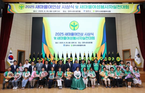 경주시새마을회(회장 박정원)는 경주시 새마을부녀회(회장 정명숙) 주관으로 26일 경주시청 알천홀에서 ‘2025년 경주시 새마을 여인상 시상식 및 새마을 여성봉사자 실천대회’를 개최했다고 밝혔다. 이번 행사는 가정이 사회에 미치는 영향과 소중함을 되새기고, 지역사회의 귀감이 되는 여성상을 발굴‧홍보하기 위해 마련됐다.‘갈등과 대화의 재발견’을 주제로 한 특강을 시작으로 표창 수여와 인사말이 이어졌다. 이날 시상식에서는 새마을여인상 22명, 내조상 2명, 다문화가족상 2명 등 총 26명이 수상의 영예를 안았다. 새마을여인상은 어머니, 며느리, 아내, 새마을 봉사자로서의 역할을 모범적으로 수행해 지역사회에 귀감이 된 이들에게 수여된다.정명숙 경주시 새마을부녀회 회장은 “새마을부녀회가 지역사회의 모범이 될 수 있도록 지혜와 참여를 모아주시길 바라며, 다가오는 APEC 정상회의의 성공을 위해서도 함께 힘을 모아달라”고 말했다.