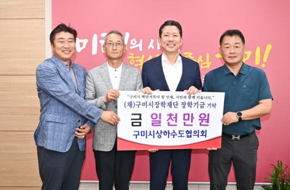 구미시상하수도협의회(회장 박연홍)는 지난 26일 선산출장소 시민소통실을 찾아 (재)구미시장학재단(이사장 김장호)에 장학기금 1천만원을 기탁했다.협의회는 14개 상하수도 관련 업체로 구성돼 있으며, 노후 관로 정비와 안정적인 용수 공급, 쾌적한 생활환경 조성을 통해 시민 삶의 질 향상을 위해 꾸준히 노력하고 있다. 이번 기탁은 협의회가 지역 인재 육성에도 뜻을 보탠 사례다.기탁식에서 박연홍 회장은 “지역의 미래를 책임질 학생들에게 도움이 될 수 있어 기쁘다”며 “앞으로도 구미 교육 발전을 위해 관심과 지원을 이어가겠다”고 말했다.김장호 구미시장은 “지역 인재를 위해 따뜻한 마음을 나눠주신 구미시상하수도협의회에 깊이 감사드린다”며 “기탁금은 우수 인재들이 지역에서 배우고 취업해 정착할 수 있는 기반을 마련하는 데 소중히 쓰겠다. 기업과 지역사회가 함께 성장하는 구미시를 만들겠다”고 했다.
