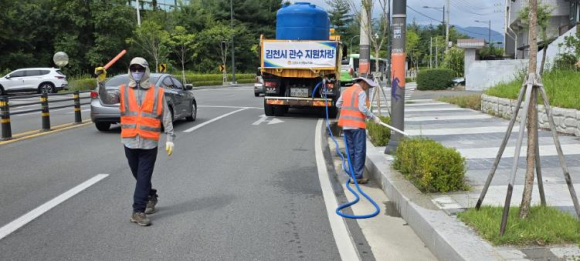 김천시는 최근 지속되는 폭염과 강수량 부족으로 인해 조경지, 공원 수목의 건전한 생육을 위하여 비상 관수에 총력을 기울이고 있다. 이번 관수는 특히 가뭄피해가 우려되는 턱화단 조성지인 영남대로 등 11개소와 수벽 13개소, 공원 68개소, 도심 내 조경지 등을 중심으로 진행되며, 도로철도과 살수차 2대와 환경위생과 살수차 1대를 긴급 지원받아 총 비상 급수 차량 6대, 이동식물 탱크차 4대를 활용해 실시하고 있다. 김천시 산림녹지과 관계자는 “조경지와 공원은 도시 열섬 현상을 완화하고 시민의 삶의 질을 높이는 중요한 요소인 만큼, 이번 비상 관수를 통해 수목 생육 피해를 최소화하고 쾌적한 녹지조경을 유지하겠다.”라고 밝혔다. 시는 가을철까지 비상 급수 체계를 유지하며 기상 상황에 따라 급수 빈도와 구역을 탄력적으로 조정할 계획이다.