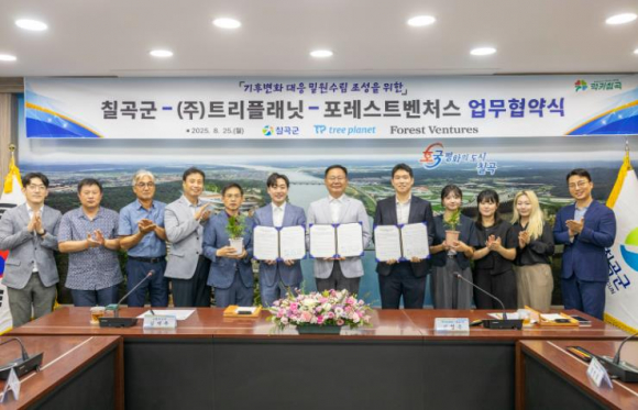 칠곡군은 지난 25일 (주)트리플래닛, 포레스트벤처스(대표 김형수)와 기후변화 대응 밀원수림 조성을 위한 업무협약을 체결했다. 이번 협약식은 양봉특구 칠곡군의 지속적인 양봉산업 발전기반 마련을 위해 칠곡군 관내 군유림과 유휴부지를 활용하여 꿀벌의 먹이인 밀원식물 보급 확대를 위해 추진한다. 칠곡군과 (주)트리플래닛은 기후변화로 인한 밀원수의 개화기 변경으로 양봉농가 문제점을 극복하기 위해 기존 주요밀원수종인 아까시 뿐만 아니라 피나무 등 다양한 밀원수종을 보급할 수 있도록 상호협력할 예정이다. 칠곡군 관계자는 “기후변화는 단순히 양봉농가뿐만 아니라 모두에게 중요한 문제로 이번 협약을 통해 기후위기에 대응할 수 있는 기반이 되기를 바란다”고 전했다.