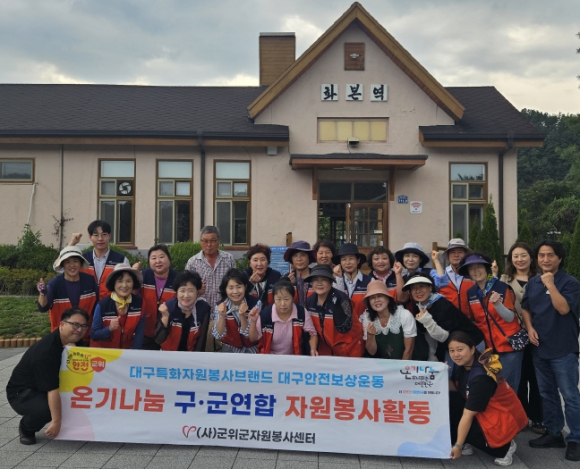 (사)군위군자원봉사센터(센터장 김정애)는 8월 27일, 산성면 화본역 일원에서 대구광역시 구·군 자원봉사센터 연합 온기나눔 캠페인의 일환으로 빗물받이 정화활동과 플로깅 자원봉사를 실시했다. 이번 캠페인은 집중호우 시 침수 위험이 있는 지역의 빗물받이를 정화해 안전한 생활환경을 조성하고자 기획됐으며, 이날 활동에는 20여 명의 자원봉사자가 참여했다. 자원봉사자들은 관광지를 중심으로 빗물받이에 쌓인 쓰레기와 잡초를 제거하고, 화본역 주변을 걸으며 쓰레기를 수거하는 플로깅도 같이 진행했다. 특히 아름다운 간이역으로 유명한 화본역 일대에서의 활동은 단순한 환경정화를 넘어 지역의 역사문화 공간을 지키는 의미를 더했다. 참가한 자원봉사자들은 “지역의 명소에서 의미있는 행사를 할 수 있어서 기쁘다.”며 뿌듯한 마음을 전했다. 김정애 센터장은“앞으로도 대구광역시 구·군 자원봉사센터가 힘을 모아 안전하고 깨끗한 지역사회를 만들 수 있도록 자원봉사 문화를 확산시키겠다.”고 밝혔다.