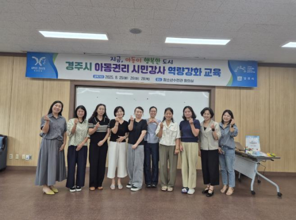 경주시는 지난 25일, 26일, 28일 사흘간 ‘경주시 아동권리교육 시민강사’를 대상으로 역량강화교육을 진행했다고 밝혔다.이번 교육은 올해 경주시가 자체 제작한 미취학용 아동권리교육 콘텐츠를 활용해 시민강사들의 전문성을 높이고, 현장 강의 역량을 강화하기 위해 마련됐다.교육과정은 워크북 ‘우리가 가진 소중한 권리 Ⅰ(UN아동권리협약 4대권리)’, ‘우리가 가진 소중한 권리 Ⅱ(UN아동권리협약 42개 조항)’와 자체 개발 동화책 ‘네가지 보물’, ‘아이들을 위한 약속’ 구연을 중심으로 구성됐다.여기에 유아중심 교육과정 이해, 모의 시연 및 평가를 병행해 실질적이고 체계적인 학습이 이뤄졌다.경주시는 아동권리를 전할 수 있는 시민강사를 양성하기 위해 2023년 11월 공개 모집을 거쳐 2024년 1월 기본·심화과정을 수료한 13명을 위촉했다.이번 교육을 이수한 강사들은 유치원, 초등학교, 아동복지시설 등에서 찾아가는 아동권리교육을 실시하며, 동시에 아동권리 옹호자로 활동하게 된다.최연선 경주시 아동청소년과장은 “시민강사의 직무역량 향상을 통해 아이들이 더 안전하고 행복하게 성장할 수 있도록 지원을 아끼지 않겠다”며, “실질적인 아동권리 증진에 더욱 힘쓰겠다”고 말했다.
