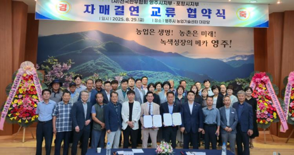 (사)전국한우협회 영주시지부와 포항시지부는 8월 29일 영주시 농업기술센터에서 자매결연 협약을 맺었다.이번 협약은 양 도시 간 긴밀한 교류와 협력을 통해 한우산업의 지속가능한 발전과 상생을 도모하기 위해 마련됐다.협약식에는 박찬욱 영주시지부장, 서윤섭 포항시지부장을 비롯해 양 지부 회원 80여 명이 참석해 뜻깊은 시간을 함께했다.협약 주요 내용은 △공동 발전을 위한 지부 상호 간 친선 교류 증진 △지역에서 생산되는 농·축·수산물 홍보 및 상호 애용 △지역 축산업 발전을 위한 정보 교환 및 회원 교육 등 다양한 협력 방안을 담고 있다.박찬욱 영주시지부장은 “포항시지부와의 자매결연을 통해 한우산업의 경쟁력을 높이고, 상호 도움이 되는 다양한 교류 활동을 전개하겠다”고 말했다.서윤섭 포항시지부장은 “이번 협약이 양 지역 한우 농가에 실질적인 도움이 되길 바라며, 앞으로도 지속적인 교류와 협력을 이어가겠다”고 전했다.이번 자매결연을 통해 양 지부가 힘을 모아 협력함으로써 지역 한우산업은 물론 농·축·수산업 전반의 상생 발전이 기대된다.