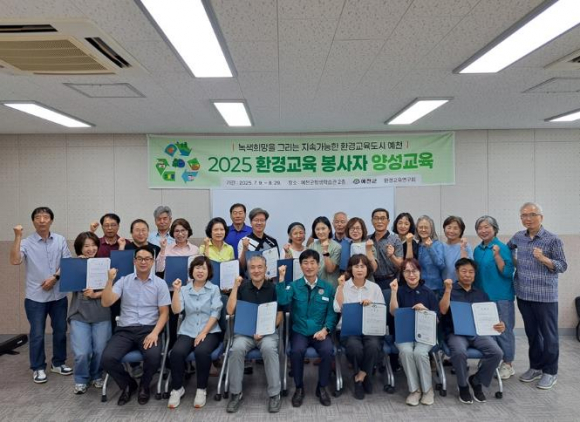 예천군은 환경문제에 관심있는 일반인을 지역사회의 환경리더로 양성하기 위한 ‘환경교육 봉사자 양성과정’을 지난 7월 9일부터 24명의 참여자를 대상으로 총 15회(30시간) 시행하고 29일에 수료식을 개최했다. ‘환경교육 봉사자 양성과정’에서는 2025년 예천군 환경교육 민간위탁 사업자인 환경교육연구회가 ▲기후변화, ▲탄소중립, ▲생물다양성, ▲물환경보전 등 환경개론을 11회(22시간) 교육했고, 환경관리과 담당공무원들이 ▲생활폐기물 및 영농폐기물 배출방법, ▲가축분뇨 적정 보관 및 처리 방법, ▲기름 유출시 대처 방법, ▲각종 환경분야 보조사업 등에 대해 2회(4시간) 교육을 실시했다. 또한, 환경관련 시설인 예천군순환형매립장, 예천군공공하수처리장, 예천읍정수장을 견학해 수강생들이 환경 전반에 대한 이해도를 높였다. 향후 교육수료생 중 희망자는 관내 읍면 마을 등을 방문하여 주민들을 대상으로 환경교육을 시행하는 등 지역민들의 환경의식 향상에 기여할 예정이다. 이옥기 환경관리과장은 “이번 과정을 통해 참여자들이 기후위기와 탄소중립 등 세계적인 환경 이슈뿐 아니라 생활 속 환경 문제에 대한 인식을 높일 수 있었다”며, “앞으로 이들이 마을을 직접 방문해 환경교육을 직접 하면서 예천군의 환경리더로 성장하길 기대한다”고 말했다.