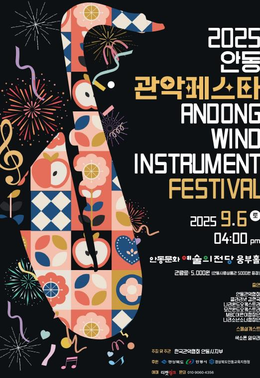 한국관악협회 안동시지부가 주최·주관하는 ‘2025 안동 관악 페스타’ 공연이 9월 6일 오후 4시, 안동문화예술의전당 웅부홀에서 개최된다.이번 공연에는 전국 초등학교 관악경연대회 우수팀으로 선정된 문경 모전초등학교 윈드오케스트라가 출연해, 어린 연주자들의 순수하고 활기찬 무대를 선보인다. 또한 안동관악협회 오케스트라와 나리윈드오케스트라가 각각 무대에 올라 실내 관악의 다양한 매력을 들려준다.나리어린이합창단과 MBC어린이합창단도 함께해 세대를 아우르는 음악적 감동을 더하며, 특별 게스트로는 대한민국을 대표하는 색소포니스트 임유리, 안동 출신 클라리넷 연주자 김현국이 함께해 공연의 완성도를 높인다.이번 안동관악페스타는 단순한 연주회가 아닌 클래식의 저변을 넓히고 관악을 대중에게 친숙하게 전하는 데 의의가 있다. 특히 안동은 인구 대비 관악 연주자가 많은 도시로, 전공자뿐 아니라 다양한 연령대의 시민 연주자들이 활발히 활동하고 있어 지역 음악 생태계가 지닌 가능성을 보여주는 자리가 될 것으로 기대된다.한국관악협회 안동시지부 관계자는 “관악은 사람의 숨결에서 비롯된 가장 인간적인 소리”라며 “누구나 즐길 수 있는 음악으로 관객들에게 다가가고 싶다”고 전했다.입장료는 5,000원이며 지역화폐 연계 페이백 제도를 통해, 관객들은 입장료 전액을 지역상품권으로 교환 받을 수 있다.