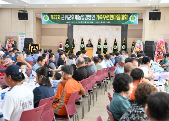 한국후계농업경영인 군위군연합회는 지난 29일 군위군민회관에서 ‘제27회 군위군후계농업경영인 가족수련 한마음대회’를 성황리에 개최했다. 이번 행사는 (사)한국후계농업경영인 군위군연합회가 주최하고, 지역 농업 발전과 회원 간 화합 및 친목 도모를 위해 마련된 자리로, 내·외빈 300여 명이 참석해 자리를 빛냈다. 개회식에서는 선진 농업 실천과 농업 가치 제고에 기여한 우수 후계농업경영인에 대한 표창 수여가 진행됐으며, 이어진 화합한마당에서는 다양한 공연과 노래자랑 등이 펼쳐져 회원 간 우의를 다지는 뜻깊은 시간이 이어졌다. 신부호 군위군연합회장은 “어려운 여건 속에서도 농업 발전을 위해 헌신해온 후계농업경영인 여러분께 깊은 감사의 말씀을 전한다”며, “앞으로도 우리 농업이 변화하는 환경에 흔들림 없이 성장할 수 있도록 선도적인 역할을 다하겠다”고 밝혔다. 김진열 군위군수는 “군위군 농업 발전의 중심에 서 있는 후계농업경영인 여러분의 노고에 감사드린다”며, “앞으로도 행정적 지원과 협력을 아끼지 않겠다”고 전했다.