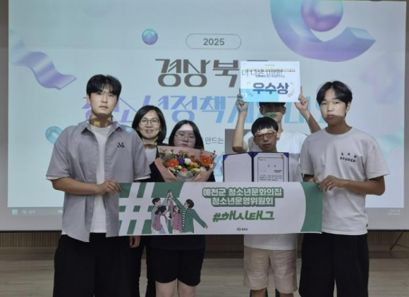 예천군은 지난 8월 30일 안동시청소년수련관에서 열린 ‘2025 경상북도청소년정책제안대회’ 본선에서 예천군청소년문화의집 청소년운영위원회가 우수상을 수상했다고 2일 밝혔다.이번 대회는 경상북도가 주최하고 경북청소년활동진흥센터가 주관했으며, 도내 30여 개 팀 중 서류심사를 거쳐 선발된 12개 시·군 청소년 참여기구가 본선 무대에 올라 정책 아이디어를 제안하고 경쟁했다.예천군청소년문화의집 청소년운영위원회는 청소년의 근로권을 조명하고, 아르바이트 현장에서 겪는 다양한 고민을 해결하기 위한 정책을 제안해 높은 평가를 받았다. 특히 실현 가능성과 청소년 생활에 미칠 긍정적 효과가 심사위원들로부터 좋은 반응을 얻었다.대회에 참가한 한 A군은 “청소년들이 겪는 현실적인 어려움을 직접 정책으로 제안해 인정받아 기쁘다”며, “앞으로도 청소년의 목소리를 담아 지역과 사회를 바꾸는 활동을 이어가고 싶다”고 소감을 전했다.윤선희 주민행복과장은 “예천군 청소년들이 지역을 넘어 경북을 대표하는 무대에서 우수한 성과를 거둔 것을 매우 자랑스럽게 생각한다”며, “앞으로도 청소년들의 창의적 정책 제안과 주도적 참여 활동을 적극 지원해 지역사회의 미래 인재로 성장할 수 있도록 하겠다”고 말했다.