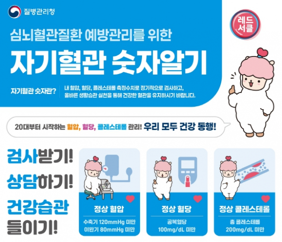 성주군 보건소는 9월 첫째 주 `심뇌혈관질환 예방관리 주간`을 맞아 ‘레드서클, 자기혈관 숫자알기’ 캠페인을 9월 1일부터 30일까지 한 달간 운영한다. 자기혈관 숫자란, 내 혈압, 혈당, 콜레스테롤 측정수치이며 자기혈관 숫자알기는 자신의 혈압, 혈당, 콜레스테롤 수치를 알고 관리하는 것이다. 정기적으로 검사하고 올바른 생활습관을 실천하여 정상수치를 유지하는 것에 대한 중요성을 이번 캠페인을 통해 홍보한다. 성주군은 심뇌혈관질환예방관리사업에서 2년 연속 경상북도 내 최우수상을 수상하며 지역주민의 만성질환 예방관리를 위해 힘쓰고 있으나, 최근 20~40대 비만이 증가하고 건강행태가 악화됨에 따라 50대 이상에서 만성질환이 지속적으로 증가하고 있어, 이를 예방하기 위해 청‧장년층 관리하고자 2040세대를 대상으로 ‘자기혈관 숫자알기’ 집중 홍보를 실시할 예정이다. 성주군 보건소 관계자는 ˝이번 캠페인을 통해 군민들이 자신의 혈관 건강에 대한 관심을 갖고, 생활 속에서 건강 수치를 꾸준히 관리하는 습관을 형성하는 계기가 되기를 바란다˝며, ˝앞으로도 다양한 예방관리 프로그램을 통해 군민들의 건강을 지키는 데 최선을 다하겠다˝고 말했다.