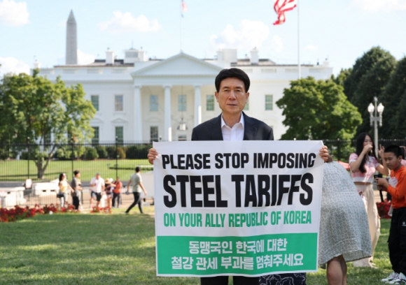이강덕 포항시장은 현지시간 1일 미국 워싱턴 D.C.에서 한국 철강산업의 중요성을 미국 정부와 시민사회에 직접 설명하며, 동맹국 간 신뢰에 기반한 공정한 무역 환경 조성의 필요성을 피력했다. 이날 이 시장은 김덕만 버지니아한인회 회장을 만나 지역기업의 북미 시장 진출과 경제·문화 협력 방안을 논의하고, 백악관 앞에서 한국 철강산업의 어려움을 알리는 캠페인을 진행했다. 지난달 28일 산업통상자원부가 포항을 ‘산업위기 선제대응지역’으로 지정했지만, 포항시는 이 조치만으로는 복합 위기를 해소하기에 부족하다며 미국 정부와 시민사회에 직접 국제적 연대와 공정한 시장 환경 조성을 위한 외교적 노력이 절실하다고 호소했다. 국내 철강산업의 심장부인 포항은 지금 관세 폭탄으로 산업기반이 붕괴될 위기에 처했다. 일부 공장은 이미 가동을 중단하거나 축소했고, 협력업체들은 줄줄이 매출 급감과 고용 축소에 시달리고 있다. 지역경제의 뼈대가 흔들리면서 고용 불안과 인구 유출, 나아가 지역 소멸의 공포까지 확산되고 있다. 이 시장은 철강산업의 위기는 이제 지역 현안이 아니라 국가 경제 전반의 생존이 걸린 중대한 과제라며 글로벌 공급 전체를 위협하는 심각한 문제라고 강조했다. 또한 “한미 정상회담에서 철강 분야가 논의조차 이뤄지지 않은 것은 심각한 문제”라며 “한국 철강산업은 국가 안보와 직결된 핵심 산업인데, 동맹국에 50%라는 살인적인 관세를 부과하는 것은 결코 정당화될 수 없다”고 목소리를 높였다. 이어 “영국처럼 최소한 25% 수준으로 조정하거나, 제한적 쿼터 예외를 적용해야 한다”며 “무엇이라도 해야겠다는 심정으로 나선 오늘, 이 호소가 한미 간 신뢰와 협력을 토대로 국제사회의 호혜적 무역환경 조성에 기여할 수 있기를 간절히 희망한다”고 덧붙였다. 김덕만 회장 역시 “버지니아한인회의 네트워크를 활용해 포항시와 함께 한국 철강산업의 중요성을 알리는 활동을 적극 지원하겠다”며 철강뿐 아니라 경제·문화 교류, 인재 교류 등 다각적 협력을 약속했다. 한편 포항시는 이날 캠페인을 시작으로 코트라(KOTRA), DGA Group 등과 연계한 후속 활동을 이어가며, 철강 관세 인하와 지역기업의 북미 시장 진출 기반을 강화할 계획이다.