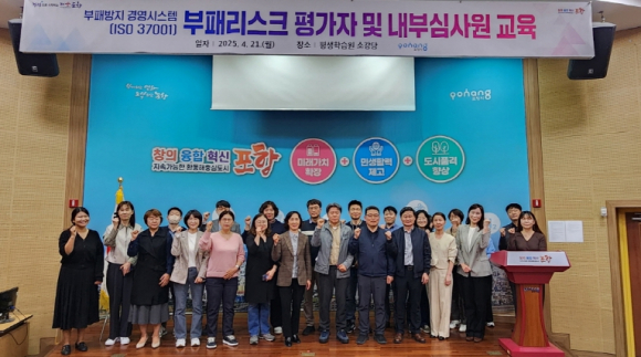포항시는 21일 평생학습원 소강당에서 ‘2025년 부패방지 경영시스템’ 사후 심사를 대비한 부패리스크 평가자 및 내부심사원 교육을 실시했다.부패방지 경영시스템(ISO 37001)은 조직 내 부패 발생 가능성을 사전에 식별하고 이를 체계적으로 관리하기 위한 국제표준 인증제도다. 부패방지 계획 수립과 이행, 지속적인 모니터링과 개선 활동을 포함하며, 매년 엄격한 사후 심사로 적합 판정을 받아야 인증을 유지할 수 있다.포항시는 지난해 7월 전국 시 단위 지자체 중 최초로 부패방지 경영시스템 인증을 획득했다. 올해는 신설 부서를 중심으로 부패리스크를 집중 관리하고, 2025년 개선 과제 발굴을 통해 사후 인증을 취득할 예정이다.이번 교육에서는 부패리스크 평가자를 대상으로 부패방지 경영시스템의 전반적인 이해와 실무 적용 방법에 대한 강의가 진행됐다. 참가자들은 부서별 업무를 분석해 부패 유발 요소를 식별하고 리스크 평가서를 직접 작성하는 실습도 병행했다.부패리스크 평가자는 팀장급 이상의 실무경험이 풍부한 직원들로 구성됐으며, 이들은 자신의 부서를 포함해 타 부서 리스크까지 상호 교차 점검하는 내부 심사원 역할도 수행하게 된다.황태일 감사담당관은 “포항시는 지속 가능한 도시 실현을 위해 환경, 사회안전망, 투명한 구축 구축에 지속적으로 힘써왔다”며, “글로벌 부정부패 사전방지 시스템을 갖추고 지속적인 청렴 시책을 발굴해 시민이 신뢰할 수 있는 윤리 행정을 실현해 나가겠다”고 밝혔다.