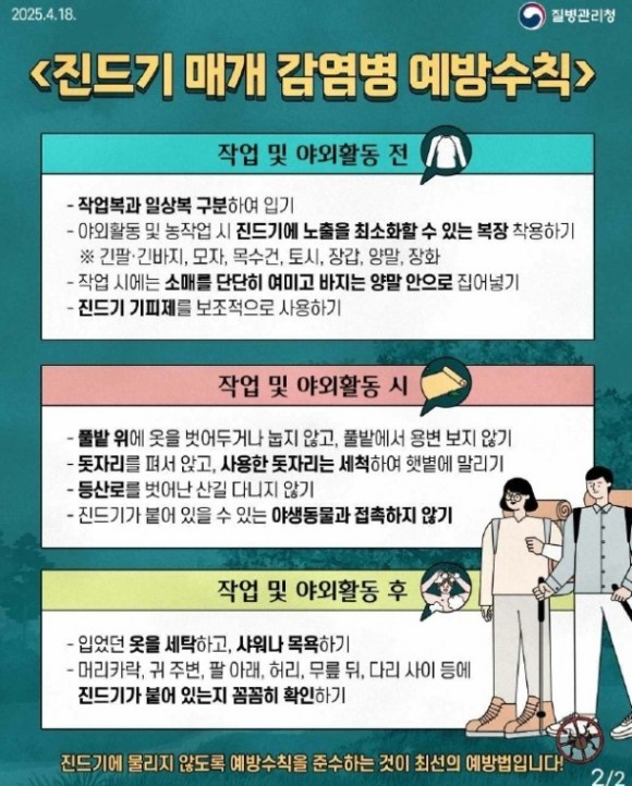 영천시보건소는 농작물 수확철을 맞아 진드기 매개 감염병을 유발하는 야생진드기에 물리지 않도록, 피부 노출 최소화 등 예방수칙을 준수할 것을 당부했다.특히, 9월부터 11월까지는 야생진드기 유충이 왕성하게 활동하는 시기로, 가을 행락철을 맞아 등산이나 농작물을 수확 시 각별한 주의가 필요하다.쯔쯔가무시증은 쯔쯔가무시균에 감염된 털진드기 유충에 물렸을 때 검은 딱지가 관찰되는 것이 특징이며, 보통 1~3주 잠복기가 지나면 발열·오한·근육통 등 증상이 나타난다. 치명률이 높은 중증열성혈소판감소증후군은 예방백신과 치료제가 없어, 고열·구토·설사·오심 등의 증상이 발생하면 즉시 의료기관을 방문해 신속한 검사와 진료를 받아야 한다.영천시보건소는 전광판 3개소와 마을 방송을 활용해 농작업 등 야외활동 시 피부 노출 최소화, 귀가 즉시 샤워·목욕 등 예방수칙과 의심 증상 발생 시 즉시 의료기관 진료를 받을 것을 지속적으로 홍보하고 있다.보건소 관계자는 “9월부터는 진드기 유충이 왕성하게 활동하는 시기로, 야외활동 시 진드기 기피제 사용, 피부 노출 최소화, 귀가 즉시 샤워 등 예방수칙 준수가 필요하다”며, “시민들의 진드기 매개 감염병 예방을 위해 교육 및 홍보를 지속적으로 진행할 계획”이라고 밝혔다.