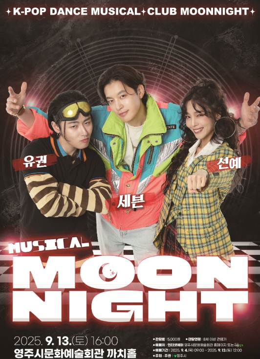 음악과 춤으로 하나 됐던 1990년대 청춘의 밤이 다시 영주에서 펼쳐진다.영주시는 오는 9월 13일 오후 4시, 영주시문화예술회관 까치홀에서 뮤지컬 `문나이트`를 선보인다.이번 공연은 이태원의 실제 클럽 ‘문나이트’를 배경으로, 세대를 아우르는 꿈과 사랑, 우정을 그린 작품이다. 가수 세븐, 원더걸스 출신 선예, 블락비 유권, EXID 혜린 등 유명 K-팝 스타들이 출연해 화려한 무대를 꾸미며, 실력파 배우들의 노래와 춤으로 관객들에게 1990년대 청춘의 열정과 감동을 다시금 전할 예정이다.특히 이 작품은 지난 3월 의성 대형산불 여파로 취소됐다가 이번에 시민들과 다시 만나는 공연으로, 더욱 특별한 의미를 지닌다. 오랜 기다림 끝에 성사된 이번 무대는 한층 깊은 공감과 감동을 선사할 것으로 기대된다.관람료는 전 좌석 5,000원이며, 8세 이상이면 누구나 관람할 수 있다. 예매는 9월 4일 오전 9시부터 9월 13일 낮 12시까지 영주시문화예술회관 누리집 또는 티켓링크에서 가능하다. 평일 오전 9시부터 오후 6시까지는 문화예술회관 사무실에서 현장 예매도 진행된다.공연과 관련한 자세한 사항은 영주시문화예술회관으로 문의하면 된다.