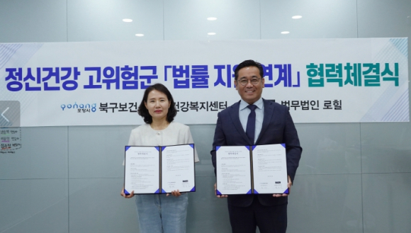 포항시 북구보건소 정신건강복지센터는 3일 법무법인 로힐(대표 변호사 정효민)과 함께 ‘정신건강 고위험군 법률 지원연계 체결식’을 개최하고, 공동 사업 ‘손잡고 행복으Law’를 공식 발표했다. 최근 통계청의 ‘2024 은둔형 고립청년 실태조사’에 따르면 은둔·고립 청년은 약 14만 명에 이른다. 또한 보건복지부 ‘2025 정신건강통계연보’에서는 20~30대 자살률이 전년 대비 4.7% 증가하는 등 청년층의 정신건강 위기가 심각한 수준임을 보여주고 있다. 특히 은둔·고립 청년과 고위험군은 채무, 가정 문제 등 법률적 갈등과 심리적 위기를 동시에 겪는 경우가 많지만 이를 통합적으로 지원하는 체계는 부족하다. 반면 변호사와 법률사무소는 이들과 접촉할 기회가 많음에도, 정신건강 위기 대응이나 연계 체계는 미흡한 상황이었다. 이에 두 기관은 민·관 협력으로 법률·심리 문제를 동시에 지원하는 모델을 구축하기로 했다. 주요 협력 내용은 ▲무료 법률상담 연계(채무·형사·가정 문제 등) ▲상담 과정에서 위험 신호 발견 시 정신건강복지센터 즉시 연계 ▲법률사무소 직원 대상 생명지킴이 교육 등이다. 김숙향 북구보건소 건강관리과장은 “법률 문제와 정신건강 문제는 서로 맞물려 악화되는 경우가 많다”며 “이번 협력으로 청년과 시민들이 법률과 심리 문제를 함께 해결할 수 있는 원스톱 지원 체계를 마련하게 됐다”고 말했다. 정효민 대표 변호사는 “법률 현장에서 만나는 많은 분들이 심리적 어려움까지 겪고 있다”며 “이번 협력은 단순 상담을 넘어 삶의 회복과 자살예방이라는 사회적 가치를 함께 만들어가는 계기가 될 것”이라고 강조했다. 포항시 북구보건소 정신건강복지센터와 법무법인 로힐은 이번 협력을 바탕으로 지역사회 위기 개입 역량을 강화하고, 민·관 협력 기반의 지속 가능한 지원 모델을 구축해 나갈 계획이다. 자세한 문의는 포항시 북구정신건강복지센터)로 하면 된다.