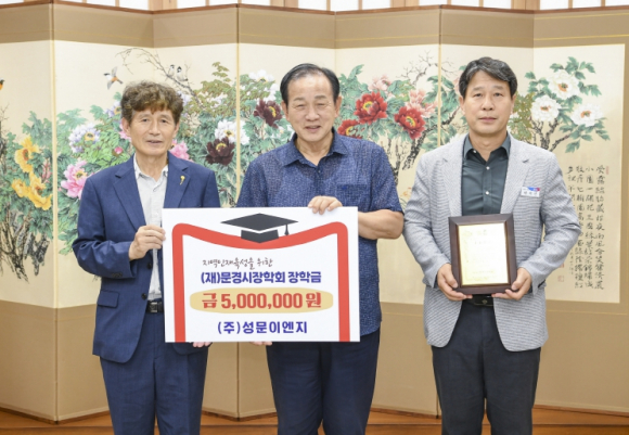 (재)문경시장학회(이사장 신현국)는 지난 3일 ㈜성문이엔지(대표 권혁재) 500만 원, ㈜DH머티리얼즈(대표 박범우)에서 300만 원의 장학금을 기탁했다고 밝혔다. 음료 및 식품 가공기계 제조업체인 ㈜성문이엔지는 경기도 화성시에 본사를 두고 문경 흥덕동에서도 사업장을 운영하고 있으며, 이번 기탁으로 누적 장학금이 3,300만 원에 이르러 권혁재 대표의 고향 발전에 대한 꾸준한 관심을 보여주고 있다. ㈜DH머티리얼즈는 경기도 안산시에 본사를 두고 작년 신기산업단지에 문경공장을 설립했으며, 남다른 애향심을 가진 박범우 대표는 문경 출신으로 작년 300만 원에 이어 금년에도 문경시장학회에 장학금 300만 원을 전달했다. 신현국 이사장은 “고향에 대한 애향심으로 문경 발전을 위해 문경시장학회에 보내주신 꾸준한 관심에 깊이 감사드리며, 문경의 미래인 지역 학생들에게 다양한 장학 혜택이 받을 수 있도록 노력하겠다.”고 말했다.