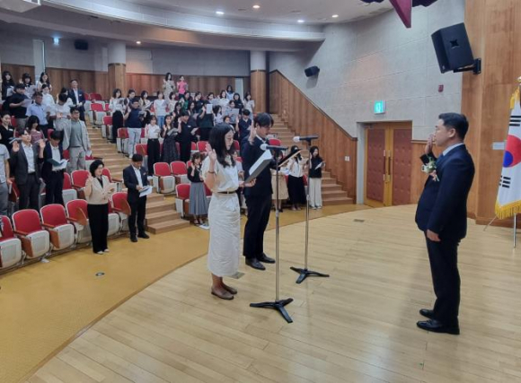 경산교육지원청은 9월 1일 10시에 경산교육지원청 제1강당에서 청직원 및 소속기관 직원 100여명이 참석한 가운데 청렴서약식을 실시했다. 이번 행사는 청렴으로 더 나은 경산교육을 만들기 위한 취지로 마련됐으며 직원 대표의 반부패 청렴서약서 낭독과 함께 전 직원이 선서를 진행하고, 서약서에 서명하며 청렴 실천 의지를 다졌다. 반부패 청렴 서약서에는 ▲법과 원칙 준수 ▲친절하고 공정한 업무수행 ▲금품 및 향응 수수 금지 ▲공익을 우선하여 사적 이익 추구 금지 등 공직자로서 지켜야 할 청렴 가치를 담았다. 정수권 교육장은“청렴은 수천 년 전부터 강조되어 내려오는 공직자의 가장 중요한 덕목이다.”며“오늘 서약식으로 그치지 말고 생활 속에서 청렴을 지속·반복적으로 실천할 수 있도록 다 같이 노력하자.”라고 말했다.