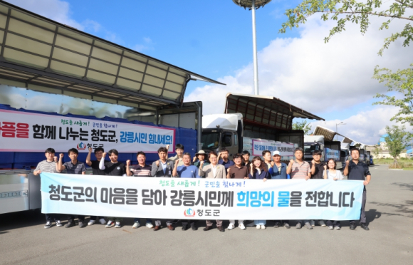 청도군은 지난 5일 강릉시의 극심한 가뭄으로 인한 식수난 해소를 위해 생수 70,000병을 긴급 지원했다고 밝혔다. 이번 지원에는 18톤 화물차량 8대가 투입되며, 현지까지 직접 운송이 이루어졌다. 최근 강릉시는 장기간 이어진 폭염과 강수량 부족으로 저수율이 크게 낮아지고, 일부 지역에서는 생활용수 공급에 차질이 발생하는 등 주민 불편이 심각한 상황이다. 이에 청도군은 하루빨리 가뭄이 해소되기를 기원하는 마음으로 군민의 뜻을 모아 긴급 지원을 결정했다. 김하수 청도군수는 “이번 지원은 청도군민 모두가 강릉시민과 함께 어려움을 나누고자 하는 마음에서 비롯됐다.”며, “작은 보탬이지만 강릉시민들께 큰 희망이 되길 바라며, 조속히 가뭄이 해소되기를 기원한다.”고 밝혔다. 청도군은 이번 지원을 통해 지자체 간 상생 협력의 중요성을 다시금 확인하는 한편, 앞으로도 전국 각지에서 재난 · 재해 발생 시 신속하고 실질적인 지원을 이어나갈 방침이다.