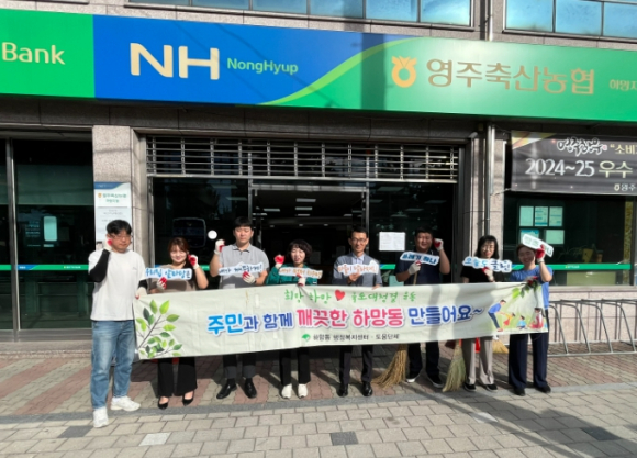영주시 하망동은 지난 4일 하망동 축협 직원들과 함께 동네 환경 정비 활동을 실시하며, ‘앞정운동(앞마당 정리운동)’ 릴레이 캠페인의 첫걸음을 내디뎠다.’앞정운동‘은 ’우리 집 앞마당은 내가 자발적으로 청소하자‘는 취지의 주민 참여형 캠페인으로, 깨끗하고 쾌적한 마을 환경 조성을 목표로 한다. 이번 릴레이는 지역 기관과 단체들이 차례로 동참해, 마을 가꾸기에 대한 공동체 의식을 확산시키고자 추진되고 있다.릴레이의 첫 주자로 나선 하망동 축협은 바쁜 업무에도 불구하고 축협 인근 거리의 쓰레기를 수거하고, 주민들이 자주 오가는 대로변을 중심으로 환경 정비 활동을 펼치며 구슬땀을 흘리며 지역사회에 훈훈한 감동을 전했다.박미선 하망동장은 “지역 기관들의 적극적인 참여 덕분에 ’앞정운동‘이 단순한 환경 정비를 넘어 주민과 기관이 함께 만드는 마을 가꾸기 문화로 자리 잡고 있다”며, “앞으로도 지속적인 릴레이 참여를 통해 더 살기 좋은 하망동을 만들겠다”고 전했다.