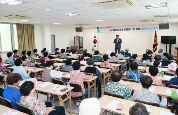예천군에서는 5일, 대한노인회 예천군지회 2층 회의실에서 예천노인대학 수강생 120명을 대상으로 김학동 군수가 특강을 진행했다. 예천노인대학 초청으로 마련된 이날 특강에서는 민선 8기 군정 운영 방향과 지역 현안 사업 및 노인의 역할 등에 대해 설명하고 의견을 청취하는 시간을 가졌으며 수강생들은 예천군이 추진하는 다양한 사업에 대해 적극적인 관심을 보였다. 김학동 군수는 “노인대학에서 새로운 것을 많이 경험하시고 배움의 열정을 계속해 이어 나가시기를 응원한다”며, “예천군민으로서 자부심을 느끼고 활기차고 건강한 삶을 주도해 가실 수 있도록 다양한 복지시책과 여가 프로그램을 지속적으로 지원해 나가겠다”고 말했다. 한편, 예천노인대학은 지난 4월 10일 개강해 11월 28일까지 운영되며, 건강·교양 강좌, 노래교실, 문화탐방 등 다양한 교육과정으로 어르신들이 건강하고 즐거운 노후를 보내는 데 기여하고 있다.