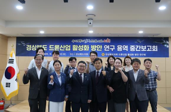 경북도의회 의원연구모임인`경상북도 드론산업 활성화 방안 연구(대표 임병하 의원)는 4일 도의회 다목적실에서`경상북도 드론산업 활성화 방안 연구 용역` 중간보고회를 개최했다. 이번 보고회는 지난 6월 경북연구원에 의뢰해 착수한 연구용역의 진행 경과를 점검하고, 연구 결과에 대한 다양한 의견을 교환하기 위해 마련됐다. 연구 책임을 맡은 경북연구원 박선율 박사는 중간보고에서 △국내·외 드론산업 현황 분석, △해외 주요국의 드론산업 육성 정책 및 사례연구, △경상북도 드론산업 현황 및 강점 분석, △경상북도 드론산업 활성안 방안 도출, △드론 산업 활성화를 위한 단기 및 중장기 전략 등 경북도의 드론산업 특성과 잠재력을 진단하고 정책 대안을 제시했다. 임병하 대표의원은 “이번 연구용역을 통해 경상북도 드론산업의 잠재력과 미래 비전을 확인할 수 있었다” 며, 드론기술 개발 투자 확대, 전문인력 양성 시스템 구축, 규제 개선, 산업 생태계 조성 등 실효성 있는 연구결과를 도출해 주기 바란다”고 주문했다. 이어 “도의회 차원에서도 드론산업이 경북의 핵심 성장 동력으로 자리 잡을 수 있도록 적극 지원해 나가겠다”고 강조했다. `경상북도 드론산업 활성화 방안 발전연구회`는 임병하 대표의원을 비롯해 김경숙, 김용현, 김홍구, 박창욱, 윤철남 의원 등 6명으로 구성되어 있으며, 경상북도 드론산업의 발전 전략 마련을 위해 연구 활동을 지속적으로 이어갈 예정이다.