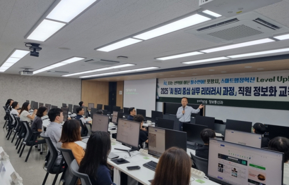포항시가 인공지능 시대에 발맞춰 공무원들의 AI 이해와 활용 역량을 동시에 높이기 위한 새로운 교육 프로그램을 마련했다. 시는 이달 5일부터 26일까지 매주 금요일 한동대학교 전산실습실에서 ‘AI 원리 중심 실무 리터러시 과정’을 운영하며, 포항시 소속 공무원 40명이 참여한다.이번 교육은 단순한 개념 이해를 넘어 AI의 핵심 원리를 체계적으로 배우고, 최신 기술 트렌드를 실무에 직접 접목할 수 있도록 기획됐다. 강의는 한동대학교 AI융합학부 이한진 교수와 AI혁신지원실 이정훈 실장이 맡아 ▲AI 최신 동향과 핵심 원리 ▲행정 업무에 적용 가능한 실습 중심 교육을 심층적으로 진행한다.세부 과정에는 AI 개념 및 원리 이해, 산업 전망 분석, ChatGPT·Perplexity·NotebookLM을 활용한 문서 작성·정보 검색, Napkin·Recraft·Gamma를 활용한 문서 도식·이미지·발표자료 제작, Suno·Whisk·Flow·ImageFX·MusicFX를 활용한 음악·멀티미디어 콘텐츠 제작 등 공무원들이 직접 활용할 수 있는 실습형 커리큘럼이 포함됐다.포항시는 올해 상반기에도 ‘AI Tool 활용 심화과정’을 운영해 공무원들의 디지털 역량을 높인 바 있다. 이번 과정은 이를 한 단계 발전시켜, 포항시가 스마트 행정을 선도하는 도시로 자리매김하는 데 힘을 보탤 것으로 기대된다.안나경 포항시 정보통신과장은 “이번 교육은 AI 원리 이해와 최신 도구 실습에 초점을 맞췄다”며, “공무원들이 AI를 자신 있게 활용해 행정의 생산성과 창의성을 높일 수 있도록 지속적인 교육과 지원을 이어가겠다”고 밝혔다.