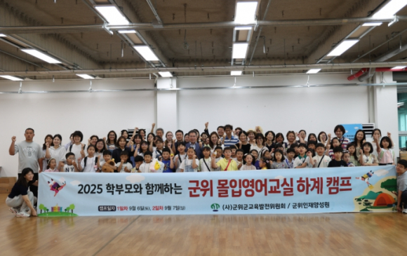 (사)군위군교육발전위원회는 지난 9월 6일, 7일 이틀간 유·초등학생 몰입영어교실 학생들을 대상으로 다채로운 체험 중심의 프로그램을 담은 ‘몰입영어 하계캠프’를 성황리에 개최했다. 이번 캠프는 학생들이 영어에 대한 흥미를 높이고, 자연스럽게 언어를 습득할 수 있도록 마켓 놀이, 기차역 방문, 아쿠아리움 탐방 등 실제 생활과 밀접한 상황을 바탕으로 한 활동들로 진행됐으며, 학생들은 원어민 교사와 함께 놀이와 체험 중심의 영어 학습을 경험하여 큰 호응을 얻었다.특히, 대구 신세계백화점 아쿠아리움을 방문, 실제 해양생물을 관찰하고 사전 실내 학습 내용과 연계된 영어 표현을 현장에서 직접 사용해 보며 학습효과를 극대화했다.또한, 9월 6일에는 몰입영어교실 학부모 간담회를 함께 열어, 군위군의 교육프로그램 운영 현황과 향후 방향 등에 대한 설명도 및 소통의 시간도마련됐다.김진열 군위군수는 “앞으로도 학생 중심의 창의적인 교육 프로그램을 지속적으로 확대해, 지역 학생들의 글로벌 역량을 키워가겠다”라고 밝혔다. 한편, 전액무료로 운영되는 군위군 몰입영어교실은 지난해 5월 개강 이후 약 150명의 학생들이 주말을 활용한 집중 영어수업에 참여해 오고 있으며, 올해 초 대구시 교육발전특구 사업 프로그램으로 선정되며 1억7,500만 원의 사업비를 교부받아 더욱 다양하고 풍성한 수업으로 운영하고 있다. 학생들은 원어민 교사와 함께하는 체험형 수업을 통해 영어에 대한 자신감을 높이고, 실제 생활에서 활용할 수 있는 표현을 자연스럽게 익히며 긍정적인 변화를 보이고 있다. 학부모들 또한 자녀들의 눈에 띄는 성취와 태도 변화를 체감하며 큰 호응을 보내고 있다.