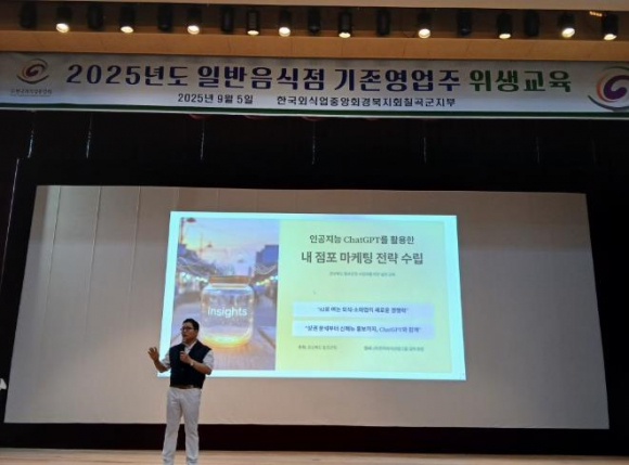 칠곡군은 지난 5일 교육문화회관 대강당에서 (사)한국외식업중앙회 경북지회 칠곡군지부 주관으로 관내 일반음식점 영업자를 대상으로 위생교육을 실시했다.이번 교육은 식품위생법에 따라 기존 일반음식점 영업자가 매년 3시간 의무 이수해야 하는 과정으로 미 이수시에는 과태료가 부과된다.교육내용은 ▲AI 상권분석을 활용한 외식업 마케팅 전략 ▲일반음식점 영업주 준수사항 등의 내용으로 진행하여, 영업주들의 경영 경쟁력 강화와 위생관리 능력 향상에 중점을 뒀다.최윤경 사회복지과장은“이번 교육을 통해 음식점 영업주들이 급변하는 외식 환경 속에서 경쟁력을 강화하고, 동시에 안전하고 위생적인 외식문화를 조성하는 계기가 되길 바란다”고 밝혔다.
