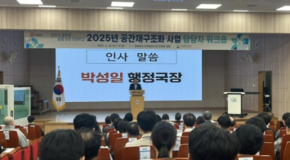 경북교육청은 30일, 구미시에 있는 경상북도교육청연수원 인재관에서 ‘PRIDE-경북 미래학교 조성 사업, 진화를 꿈꾸다’를 주제로 2025년 공간재구조화 사업담당자 120여 명이 참석한 가운데 사업담당자 워크숍을 개최했다. 이번 워크숍은 급변하는 미래사회와 교육과정 변화에 대응하기 위해 학교 공간을 재구성하는 사업의 필요성과 경북형 미래학교 조성 방향을 공유하고, 사전기획가와 학교 구성원 등 사업 참여자들의 역할에 대한 이해도를 높이기 위해 추진됐다. 워크숍은 △공간재구조화 사업에 대한 이해와 사례 소개(한국교육시설안전원 조창희 팀장) △사업 운영 중점 사항 안내(미래학교추진단 부서별 담당자) △1차년도 경북형 공간재구조화 사업 중점사항 설명 등으로 진행됐으며, 질의응답 시간을 통해 참석자들의 궁금증을 해소하는 시간도 마련됐다. 행사에 참석한 한 업무담당자는 “공간재구조화 사업의 중요성과 구체적인 추진 방향을 이해하는 데 큰 도움이 됐다”라고 소감을 전했다. 임종식 교육감은 “공간재구조화 사업을 통해 학령인구 감소와 지역 소멸이라는 위기에 대응하고, 지역과 학교공동체가 함께 소통하고 공감하는 특색 있는 미래학교를 만들어 나가길 바란다”라며, “이를 통해 지역 활성화와 정주 여건 개선에 기여할 수 있기를 기대한다”라고 말했다.