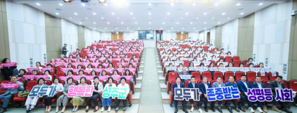 성주군은 9월 9일 성주군청 대강당에서 성주군 여성지도자 등 250명이 참석한 가운데 ‘2025년 성주군 양성평등주간 기념행사’를 개최했다. 성주군여성단체협의회(회장 여화선)가 주관한 이번 행사는‘모두가 존중받는 성평등 사회, 모두가 행복한 성주군’이라는 슬로건 아래 지역 내에서 다년간 봉사활동을 이어오며 양성평등 향상에 앞장선 여성단체 회원 표창과 기념식, 양성평등 퍼포먼스, 주제강연 순으로 진행됐다. 성주군여성단체협의회 여화선 회장은 기념사에서 “모두가 행복한 대한민국을 향해 나가기 위해서는 성평등이 필수적 가치이며 성별의 차이를 인정하면서도 서로 존중하여 모두가 행복한 사회가 되기 위해 노력해 나가자”고 밝혔다. 이병환 성주군수는 격려사를 통해 “여성단체협의회 회원들을 비롯한 많은 여성들이 지역 곳곳에서 경제활동과 다양한 봉사활동을 펼치며 성주군 발전과 화합을 위한 중심축의 역할을 하고 있다.”고 강조했으며, “서로 존중하고 공정한 기회가 제공되어 지역 주민 모두가 만족하고 살 수 있는 성주군이 될 수 있도록 노력하겠다”고 밝혔다.