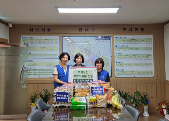 바르게살기운동 북부동위원회는 9일 관내 독거어르신들을 위한 ‘사랑의 물품 꾸러미 나눔 행사’를 진행했다.이번 행사에서는 홀로 생활하며 도움이 필요한 어르신 5가구를 대상으로 라면, 계란, 과일 등 생필품을 정성껏 준비하여 가정에 직접 전달했다. 위원들은 단순히 물품을 전달하는 데 그치지 않고, 안부를 살피며 따뜻한 말을 건네는 등 어르신들과의 정서적 교감에도 힘썼다.바르게살기운동 북부동 위원회는 그동안 다양한 봉사활동과 나눔 행사를 통해 지역 사회의 든든한 버팀목이 되어 왔으며, 앞으로도 취약계층을 위한 지속적인 나눔 활동을 전개하여 더불어 사는 따뜻한 공동체 조성에 힘쓸 계획이다.이재경 바르게살기운동 북부동위원장은 “회원님들의 정성과 마음이 담긴 물품들이 어르신들께 작은 힘이 되길 바란다”며 “앞으로도 꾸준한 봉사활동으로 이웃사랑을 실천하고, 따뜻한 나눔 문화가 확산될 수 있도록 노력하겠다”고 전했다.김현주 북부동장은 “늘 지역 사회를 위해 앞장서 주시는 바르게살기운동 북부동 위원회에 감사드린다”며 “행정복지센터 또한 복지 사각지대 해소와 소외된 이웃 돌봄에 최선을 다하겠다”고 말했다.