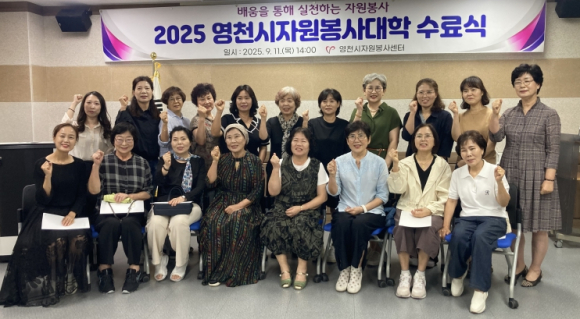 영천시자원봉사센터는 11일 다나눔센터 교육실에서 ‘2025 자원봉사대학 수료식’을 개최했다.자원봉사대학은 지난 6월에 개강해 이미용과 네일아트 과목에 총 32명이 참여했으며, 10주간의 교육을 통해 봉사 현장에서 활용할 수 있는 전문 기술을 익혔다.수료식은 국민의례를 시작으로, 수료증 수여, 우수 수료생 표창장 전달, 활동 영상 시청, 기념 촬영 순으로 진행됐다. 특히, 수료생들은 교육을 마친 후 경로당과 복지시설을 방문해 네일아트와 이미용 봉사활동을 펼치며, 배운 기술을 지역사회에 환원하고 실질적인 봉사의 가치를 실천하고 있다.영천시자원봉사센터는 매년 자원봉사대학을 운영하며 봉사자의 역량 강화와 전문 봉사단 양성에 힘쓰고 있다. 또한, 지역사회의 수요에 맞춘 맞춤형 봉사활동을 지속적으로 확대해 나갈 계획이다.구홍우 자원봉사센터 소장은 “이번 교육을 통해 습득한 기술이 단순한 학습을 넘어서 봉사로 이어지는 것이 자원봉사대학의 가장 큰 성과”라며, “앞으로도 다양한 전문봉사단을 육성해 시민들과 함께 행복한 영천을 만들어 나가겠다”고 전했다.