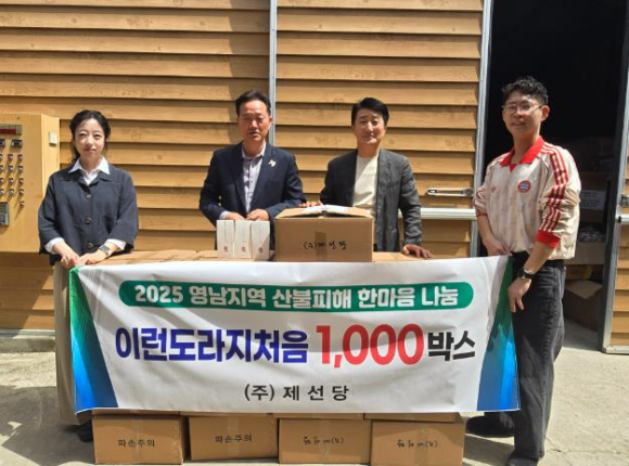 2025년 4월 17일, 경주 서면 사라리에 위치한 한방건강식품 제조업체 ㈜제선당이 최근 발생한 대형 산불로 피해를 입은 경북 의성군에 자사의 건강보조식품인 ‘이런 도라지처음’ 제품 1,000박스(시가 2천만 원 상당)를 기부했다.‘이런 도라지처음’은 도라지, 맥문동, 더덕, 배 추출물 등을 주 원료로 사용한 한방 건강 보조식품으로, 제선당의 전통 제조 공법을 바탕으로 만들어졌다. 이 제품은 기관지와 폐 건강에 도움을 주며, 특히 목소리를 많이 사용하는 사람들과 어르신들에게 효능이 높은 것으로 알려져 있다.이주형 대표는 “갑작스런 산불로 피해를 입은 이재민들에게 조금이나마 도움이 되고자 기부를 결심했다”며, “이재민들이 하루빨리 안정된 일상을 되찾기를 바란다”고 소감을 전했다. 또한, 그는 평소에도 경로당과 마을회관에서 어르신들에게 무료로 건강 보조식품을 제공하는 등 지역사회의 복지 활동에 힘쓰고 있다.㈜제선당은 7년째 경주에서 사업을 운영하고 있으며, 경주농식품수출협의회 회장으로도 활동 중이다. 이 대표는 지역 농수산물을 원료로 한 특산품 개발과 해외 시장 개척에도 많은 관심을 기울이고 있다.