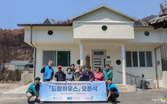 의성군은 사회복지법인 ‘따뜻한 동행’(상임대표 이광재)과 함께 추진한 산불 피해 경로당 개보수 사업 ‘드림하우스’를 4월 말 완료했다고 30일 밝혔다.‘드림하우스’ 사업은 지난 3월 발생한 산불로 부분 훼손된 경로당 2개소를 대상으로 한 개보수 지원 사업이다. 이번 사업을 통해 따뜻한 동행에서 총 3천만 원 상당의 예산을 투입해 외벽과 내부 공간을 전면 리모델링했으며, 어르신들이 보다 안전하고 쾌적한 환경에서 생활할 수 있도록 개선을 마쳤다.보수된 경로당은 현재 정상 운영 중이며, 주민들은 새롭게 단장된 공간에서 여가 활동과 소통을 이어가고 있다. 한 마을 주민은 “불에 그을린 경로당을 볼 때마다 마음이 아팠는데, 이렇게 깨끗하고 따뜻한 공간으로 바뀌어 정말 감사하다”라며 고마움을 전했다.김주수 의성군수는 “지역의 아픔에 공감하고 실질적인 도움을 주신 따뜻한 동행에 감사드리며, 군에서도 피해 주민들의 일상이 조속히 회복될 수 있도록 복구와 지원에 최선을 다하겠다”라고 밝혔다.한편, 의성군은 앞으로도 산불 피해 지역 주민들을 위한 다양한 복구 지원 및 공동체 회복 사업을 지속 추진할 계획이다.