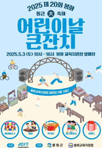 제103회 어린이날을 기념해 ‘제20회 봉화 어린이날 큰 잔치’행사가 5월 3일 봉화교육지원청 앞마당에서 개최된다.봉화청년회의소 주관으로 열리는 이번 행사는 어린이들이 가족과 함께 마음껏 뛰고 즐길 수 있도록 다양한 체험과 경험을 선사할 예정이다.행사에서는 오전 10시 기념행사를 시작으로 목각인형, 포토엽서, 볼록카네이션 만들기 등 체험부스가 운영되며 떡볶이, 슬러시, 닭강정, 츄러스 등 먹거리를 비롯해 MC와 함께하는 명랑운동회, 전기카트, 에어바운스 등을 운영해 아이들의 흥미를 자극할 예정이다.특히 원활한 행사 진행을 위해 안전보험 가입 및 자원봉사자 50여 명, 의료인력 및 구급차 등을 배치해 대규모 참여인원에 대한 안전사고 예방에도 최선을 다할 계획이다.박재한 봉화청년회의소 회장은 “어린이날을 기념해 다채로운 체험과 풍성한 이벤트를 준비한 만큼 온 가족이 참여해 아이들과 즐거운 추억을 쌓아 가시길 바란다.”라고 말했다.