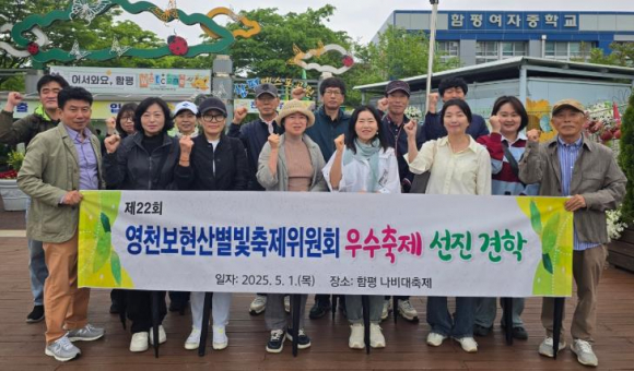 영천보현산별빛축제위원회는 1일 제22회 보현산별빛축제의 발전 방안을 모색하기 위해 대한민국 대표 문화관광축제로 선정된 ‘함평 나비대축제’를 견학했다.이번 견학은 별빛축제의 본격적인 준비에 돌입하기 위한 첫걸음으로, 위원회와 문화관광해설사 등을 포함한 20여 명이 참여해 대표 우수축제의 체험·전시 프로그램, 먹거리 장터, 야외공연장 등 축제 구성방식과 주요 운영방안 등을 직접 느껴보는 시간을 가졌다.김선옥 축제위원장은 “이번 방문을 통해 축제관광 활성화를 위한 다양한 의견을 교류하는 유익한 시간을 가졌다”며, “10월 17일부터 3일간 개최되는 별빛축제의 성공적인 추진을 위해 이를 적극 반영해 나갈 수 있도록 최선을 다하겠다”고 말했다.