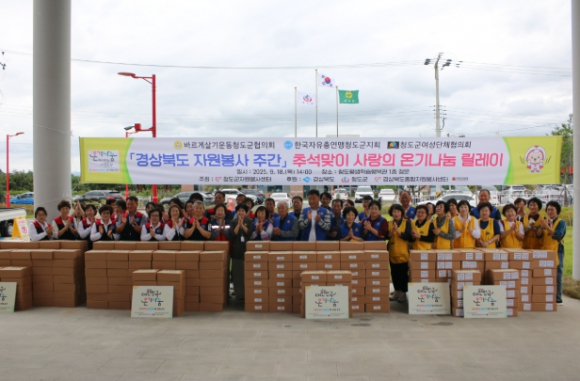 청도군 자원봉사센터(센터장 홍봉옥)는 지난 18일 청도평생학습행복관에서 바르게살기운동청도군협의회(회장 김수진), 한국자유총연맹청도군지회(회장 조인제), 청도군여성단체협의회(회장 변소영) 3개 단체 자원봉사자 80여명이 참석한 가운데 추석맞이 ‘사랑의 온기나눔 릴레이’에 동참했다.사랑의 온기나눔은 각종 재난, 재해 및 경제적으로 어려움을 겪은 국민을 위로하고 서로가 격려하는 나눔 분위기를 조성하기 위해 경북 22개 시군에서 릴레이로 진행되고 있으며, 이날 릴레이에서는 3개 단체에서 각각 100만원씩 기부하여 저소득 취약 가구에 배부될 식용유·부침가루·미역·통조림 등이 담긴 추석물품키트 360세트 나눔에 힘을 보태었다.홍봉옥 자원봉사센터장은 “자원봉사자들의 자발적인 참여와 나눔의 실천으로 취약 계층에게 따뜻한 마음을 전달할 수 있게 되어 매우 보람을 느끼며, 온기나눔 릴레이가 계속 이어지고 더욱 활성화 될 수 있도록 노력하겠다.”고 말했다. 김하수 청도군수는 “더불어 사는 행복공동체로 도약하는 데 헌신한 3개 단체 회원들께 감사드리며, 앞으로도 적극적인 봉사활동을 위한 기반 조성을 위해 노력하겠다”고 말했다.