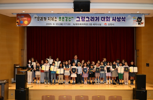 김천시는 9월 23일 녹색미래과학관에서 “우리가 지키는 푸른 김천” 그림그리기 대회 시상식을 개최했다. 이 대회는 지난 9월 6일 진행됐으며, 안산공원에서 180여 명의 초등학생들이 참가해 기후 위기와 환경문제에 대한 우려와 해결을 위한 실천 방법을 하얀 도화지 위에 담아냈다. 미술 전공자 5명으로 구성된 심사위원단은 주제 적합성, 완성도, 창의·독창성 등을 종합적으로 고려하여 총 34개의 작품을 수상작으로 선정했다. 이날 시상식에는 수상자 34명과 가족들이 참석했으며, 전시된 수상 작품을 감상하고 기념 촬영하는 시간을 가졌다. 배낙호 시장은 수상자들에게 축하 인사를 전하며 “어린이들이 그림으로 알려주듯이 푸른 김천을 지키기 위해 일회용품 줄이기, 분리수거, 에너지 절약 등 일상에서의 실천이 필요하다.”라고 시민들에게 당부했다. 이번 수상 작품은 녹색미래과학관(9.23.~10.1.), KTX김천구미역(10.2.~10.16.), 율곡도서관(10.17.~10.31.)에 전시될 예정이며, 김천시 공식 유튜브 채널을 통해 대회 현장 스케치 및 작품 모음 영상을 감상할 수 있다.