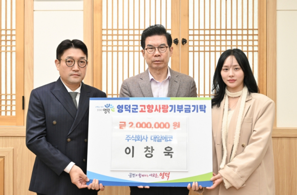환경 및 폐기물 처리 기업인 ㈜대일에코 이창욱 대표와 대게환경피앤씨 김상웅 대표의 자녀 김진영 씨가 경북산불로 피해가 컸던 영덕군민을 응원하는 뜻으로 고향사랑기부에 동참해 각 200만 원을 기탁했다.김광열 영덕군수는 “지역을 아끼는 따뜻한 마음과 나눔에 깊이 감사드린다”며, “기탁하신 기부금은 군민을 위해 투명하고 가치 있게 사용하겠다”라고 고마움을 표했다.