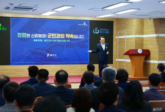 울진군은 5월 1일 군청 대회의실에서 국·실과 소장 및 읍·면장, 팀장들을 대상으로 청렴한 공직문화 조성을 위해 기관장이 직접 전하는 청렴 리더십 특강을 개최했다. 이번 특강은 조직 내 청렴 의식 제고와 공직자로서의 책임감을 고취하기 위한 자율적 청렴 교육의 일환으로 기관장이 직접 강단에 올라 공직자들과 청렴에 대한 생각을 공유하고 조직의 청렴 의지를 함께 다짐하고자 마련되었다. 이날 손 군수는 △청탁금지법, △이해충돌방지법, △공공재정환수법, △공익신고자 보호법 등 공직자가 준수해야 할 부패방지 법령을 사례 중심으로 설명하면서, 청렴 의미와 중요성, 관리자들의 청렴 리더십 발휘, 청렴도 향상을 위한 역할과 책임 등 목민관이 갖추어야 할 청렴 의식을 일깨우는 시간을 가졌다. 군에서는 앞으로 기관의 청렴 의지를 대내외에 전파하기 위하여 외부 계약 업체 등을 대상으로 청렴 서한문 발송, 부패취약분야 개선을 위한 청렴 회의체를 운영하는 등 다양한 시책을 통해 기관장을 포함한 전 직원이 함께 실천하는 청렴문화 확산을 위해 노력해 나갈 계획이다. 손병복 울진군수는 “공직자의 청렴은 국민과의 신뢰를 잇는 가장 기본적인 약속이며, 선택이 아닌 우리가 반드시 지켜야 할 기본가치”라면서“청렴 문화 확산 및 부패 방지를 위해 모두가 적극 노력함으로써 청렴하고 신뢰받는 울진군을 만들어 가자”라고 강조했다.