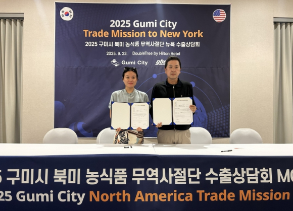 구미시가 9월 22일부터 28일까지 미국 뉴욕과 캐나다 벤쿠버에 ‘2025 구미 농식품(G-Food) 시장개척단’을 파견하고‘G-Food’의 글로벌 시장 진출을 본격화했다.이번 개척단은 미국의 상호 관세 조치 등 불안정한 무역 환경 속에서도 G-Food 기업들이 세계 최대 식품 시장인 북미 지역에 안정적으로 진출하도록 돕기 위해 추진됐다. 참여기업은 쌀 가공식품(냉동김밥, 떡볶이, 쭈꾸미볶음밥), 비건식품(잡채), 베이커리류(마카롱), 주류(막거리) 등 수출 유망 품목을 생산하는 지역 내 식품 제조·가공 6곳이다.구미시는 이번 파견을 통해 △관세사 세미나 △유력 바이어 1:1수출 상담회 △현지 시장 조사 △캐나다‘구미시 특별 판촉 행사’참여 등을 진행하며 G-Food 세계화를 가속할 지원을 강화했다.특히 9월 한 달간 캐나다 벤쿠버 한남슈퍼 3곳에서 진행되고 있는 구미시 특별 판촉 행사에 참여하여 현지 소비자들에게 G-Food를 직접 선보이고, 실질적인 판매를 통해 현지 시장 반응을 파악할 수 있는 기회를 제공한다.한편 구미시는 농식품 수출 역량 강화를 위해 지난해보다 3배 증액된 총 4억 8천만 원을 투입했으며, 주요 사업으로는 △수출농식품 안전성 제고 지원(2억4천7백만 원) △수출농식품 브랜드 경쟁력 제고 지원(1천6백만 원) △농식품 국외판촉 지원(7천만 원) △농식품 무역사절단 파견(1억5천만 원) 등이다.김장호 구미시장은 “이번 개척단 파견과 현지 판촉전이 G-Food의 장기적인 성장 기반을 마련하고, K-Food 시장의 경쟁 심화에 대비하는 계기가 되기를 바란다”며, “앞으로도 구미의 우수한 농식품이 세계 시장으로 뻗어나갈 수 있도록 적극적으로 지원하겠다”고했다.
