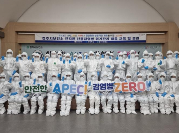 경주시보건소는 2025 APEC 정상회의를 앞두고 신종감염병 위기관리 역량 강화를 위해 지난 23일과 24일 이틀간 병원급 의료기관과 보건소 전 직원을 대상으로 감염병 위기대응 교육 및 실습훈련을 실시했다.이번 교육·훈련은 대규모 국제행사 개최 시 발생할 수 있는 감염병 재난 상황에 대비해 신속하고 표준화된 대응체계를 확립하고, 현장 대응 인력의 실질적인 대응 능력을 높이기 위해 마련됐다.교육에서는 경북권질병대응센터 구슬 연구사가 ‘재난 위기상황 감염병 표준매뉴얼’을 주제로 강의를 진행했으며, 동국대학교 의과대학 예방의학교실 유석주 교수가 사례를 중심으로 한 신종감염병 대응 방법을 교육했다.이어 Level D 개인보호구 착‧탈의 실습을 통해 실제 상황에 대비한 대응 능력을 점검하고 보완하는 시간을 가졌다.진병철 경주시 보건소장은 “이번 교육과 훈련을 통해 보건소와 의료기관 종사자들이 감염병 위기 상황에 더욱 체계적이고 능동적으로 대응할 수 있는 역량을 갖추게 됐다”며, “앞으로도 APEC 정상회의를 안전하게 치를 수 있도록 철저한 감염병 대응체계를 유지하겠다”고 밝혔다.경주시는 이번 훈련을 계기로, APEC 정상회의 기간 동안 시민과 방문객의 안전을 최우선으로 확보하기 위한 방역 준비에 만전을 기할 계획이다.