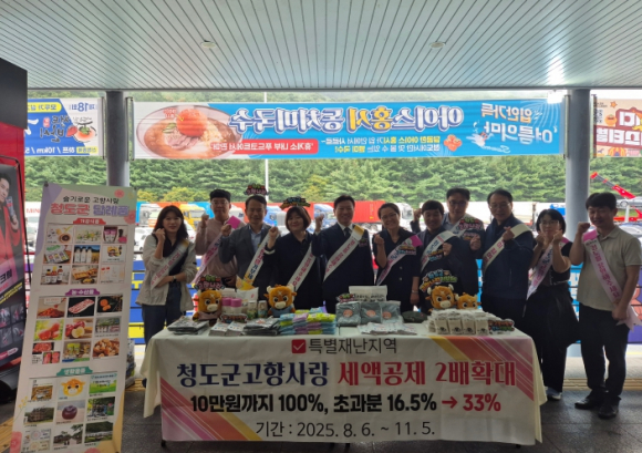 청도군은 9월 25일 추석 명절 연휴를 맞아 귀성객이 집중되는 대구~부산 고속도로 청도 새마을 상·하행선 휴게소에서 ‘고향사랑기부제’홍보 캠페인을 펼쳤다.이날 캠페인에는 새마을휴게소 김봉배 소장, 청도군 농협은행 군지부 박용규 지부장, 청도군 박숙진 재무과장 등 관계자 10여 명이 함께 참여하여 귀성객들에게 고향사랑기부제의 취지와 혜택을 알리고, 다양한 홍보 물품을 배부했다.또한 농협은행 군지부에서 쌀의 우수성을 알리고, 소비 촉진을 위해 백설기를 배부하여 귀성객들의 큰 호응을 얻었다.‘고향사랑기부제’는 자신의 주소지가 아닌 다른 지방자치단체에 연간 최대 2,000만 원까지 기부할 수 있는 제도로, 기부금 10만 원까지는 전액(100%) 세액공제를 받을 수 있고, 10만 원을 초과하는 금액은 16.5% 세액공제를 받을 수 있다. 또한 기부액의 30% 상당의 지역특산품을 답례품으로 받을 수 있어 큰 호응을 얻고 있다.특히 청도군은 지난 7월 집중호우로 인해 특별재난지역으로 지정됨에 따라, 2025년 8월 6일부터 11월 5일까지 3개월간은 10만 원 초과분의 세액공제율이 기존 16.5%에서 33%로 상향 적용된다. 이를 통해 피해지역의 조속한 생활 안정과 기부자에게도 한층 강화된 세제 혜택이 주어진다.김하수 청도군수는 “이번 추석 고향사랑기부제 홍보 캠페인을 통해 수해 피해복구와 지역경제 회복에 큰 힘을 보탤 수 있을 것으로 기대한다”며, “군민과 전국 각지의 많은 분들이 따뜻한 마음으로 기부에 동참해 주시길 바란다”라고 전했다.