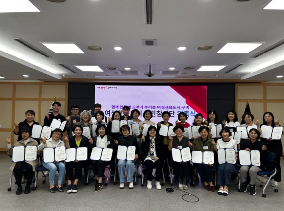 구미시는 지난 30일 시청 대회의실에서 제6기 ‘구미시 여성친화도시 시민참여단’ 위촉식을 열고, 시민이 함께 만들어가는 여성친화도시 조성을 위한 첫걸음을 내디뎠다.이번 시민참여단은 지난 2~3월 구미시 홈페이지를 통한 공개 모집을 거쳐 최종 33명이 선발됐다. 위촉식 직후에는 ‘성인지 감수성과 여성친화도시의 이해’를 주제로 역량강화 교육을 실시해 시민 정책파트너로서의 역할과 활동 방향을 숙지하는 시간을 가졌다.참여단은 앞으로 2년간 ‘행사·회의’, ‘공공시설’, ‘홍보물’ 3개 분과로 나뉘어 활동하게 된다. 주요 역할은 성인지적 관점에서 정책을 모니터링하고 개선방안을 제안하는 한편, 양성평등 인식 확산과 여성친화도시 홍보에 앞장서는 것이다.특히 일상 속에서 발견되는 불편사항이나 개선점을 시민의 눈높이에서 제시함으로써 보다 체감할 수 있는 정책 변화를 이끌어낼 것으로 기대된다.박은희 미래교육돌봄국장은 “시민참여단은 다양한 시민 의견을 수렴해 여성친화도시 정책을 추진하는 데 있어 가장 중요한 역할을 맡았다”며 “시민이 공감하고 체감하는 정책이 만들어질 수 있도록 참여단의 소중한 목소리를 적극 반영하겠다”고 밝혔다.한편, 구미시 여성친화도시 시민참여단은 2014년 창단 이후 부서별 여성친화사업 컨설팅, 공중화장실 안심비상벨 점검, 공공시설 및 축제·공공기관 홈페이지·홍보물 모니터링 등 다양한 활동을 이어오고 있다. 시민이 직접 참여하는 실질적인 정책 제안과 피드백을 통해 구미시를 모두가 누리는 여성친화도시로 만드는 데 기여하고 있다.