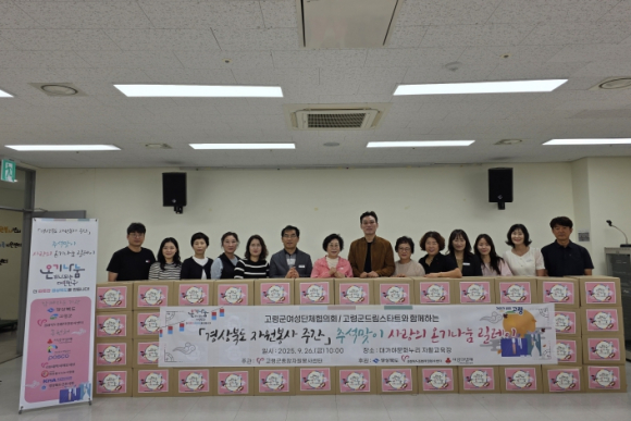 고령군종합자원봉사센터(센터장 이강하)는 9월 26일 고령군여성단체협의회(회장 백신선) 임원 및 드림스타트팀 10여명과 함께 추석맞이 사랑의 온기나눔 릴레이 활동을 실시했다.이번 나눔 활동은 여러 생필품을 포함한 꾸러미를 만들어 추석 연휴를 앞두고 홀로 계실 관내 독거노인과 조손가정 52가구에 전달하고 안부를 확인하는 등 이웃 간 온기를 나눴다.이날 봉사에 참여한 백신선 고령군여성단체협의회 회장은 작은 정성이지만 지역사회를 위해 봉사할 수 있어 뜻깊었고, 건강과 행복이 가득한 추석 명절이 되길 희망한다고 전했다.이강하 센터장은 추석 명절을 맞아 작은 정성으로 마련한 사랑의 꾸러미가 이웃분들께 따뜻한 위로가 되길 바라며, 앞으로도 지역사회와 함께하는 나눔 문화를 이어가겠다고 전했다.고령군(군수 이남철)은 나눔 문화에 동참해주신 여러분께 깊이 감사드리며, 앞으로도 지역사회에 나눔 문화가 더욱 확산될 수 있도록 지속적인 관심과 지원을 이어나가겠다고 말했다.