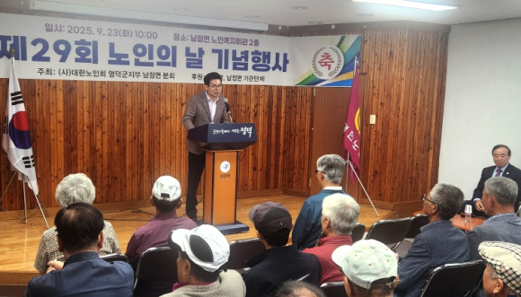 대한노인회 남정면노인분회는 다가오는 노인의 날을 맞아 지난 23일 노인복지회관에서 노인의 날 기념행사와 민속놀이대회를 열었다.이날 기념행사에는 관내 어르신 80여 명이 참석했으며, 국민의례, 노인복지 증진 유공자 표창, 축사, 마을별 한궁 및 투호 놀이 대회 등의 행사가 이뤄졌다.남정면노인분회 김상노 회장은 “10월 2일 노인의 날을 맞이해 행사에 참석하신 어르신들께 감사의 인사를 전하며, 노인을 존경하는 문화가 이어질 수 있도록 더욱 활발한 활동을 이어가겠다”라고 밝혔다.이형의 남정면장 “노인 주간 행사를 준비해 주신 남정면 노인분회 김상노 회장님과 임원분들께 감사드리며, 앞으로 어르신들의 위한 복지서비스 확대와 지원에 최선을 다하겠다”라고 전했다.