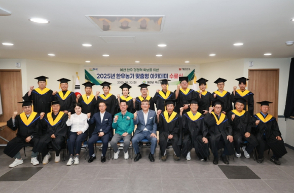 예천군은 30일 오후 4시, 단샘어울림센터 회의실에서 한우농가 30명이 참석한 가운데 2025년 ‘예천한우 맞춤형 아카데미 수료식’을 개최했다. 이번 수료식에는 김학동 군수도 함께해 수료자들을 격려했다. ‘예천한우 맞춤형 아카데미’는 예천 한우의 품질 향상과 농가들의 사육 기술 향상을 위해 마련된 프로그램으로, 지난 7월 3일 개강식을 시작으로 9월 30일까지 총 14회에 걸쳐 진행했다. 현장 경험이 풍부한 전문가들로 구성된 강사진이 강의를 맡아 한우개량, 사양 관리, 질병예방, 조사료 생산 등 다양한 분야의 교육을 진행했으며, 특히 이론 강의뿐 아니라 생축장 현장학습 등 실질적인 경험을 쌓을 수 있는 기회를 제공해 농가들에게 큰 호응을 얻었다. 이날 수료식은 학사보고, 수료증 수여, 우수교육생 표창 등의 순으로 진행됐으며, 30명의 교육생들이 수료증을 받았고 전체 교육과정에 성실히 참여한 4명의 모범 교육생이 개근상을 수상했다. 교육에 참여한 청년 농가는 “교육을 통해 한우 개량과 사양관리에 깊이 배울 수 있는 좋은 기회가 됐다”며, “전문적인 교육 덕분에 실무에 바로 적용할 수 있는 지식과 경험을 얻을 수 있었다”라며 만족감을 전했다. 김학동 군수는 “농가들이 교육을 통해 얻은 지식과 경험을 현장에서 실천하여 소득증대로 이어지길 바란다”며, “한우 개량 및 사양관리 기술 향상이 예천한우의 경쟁력을 강화하는 중요한 역할을 하는 만큼 앞으로 한우개량 및 사양관리 향상을 위해 지원을 아끼지 않겠다”고 말했다.
